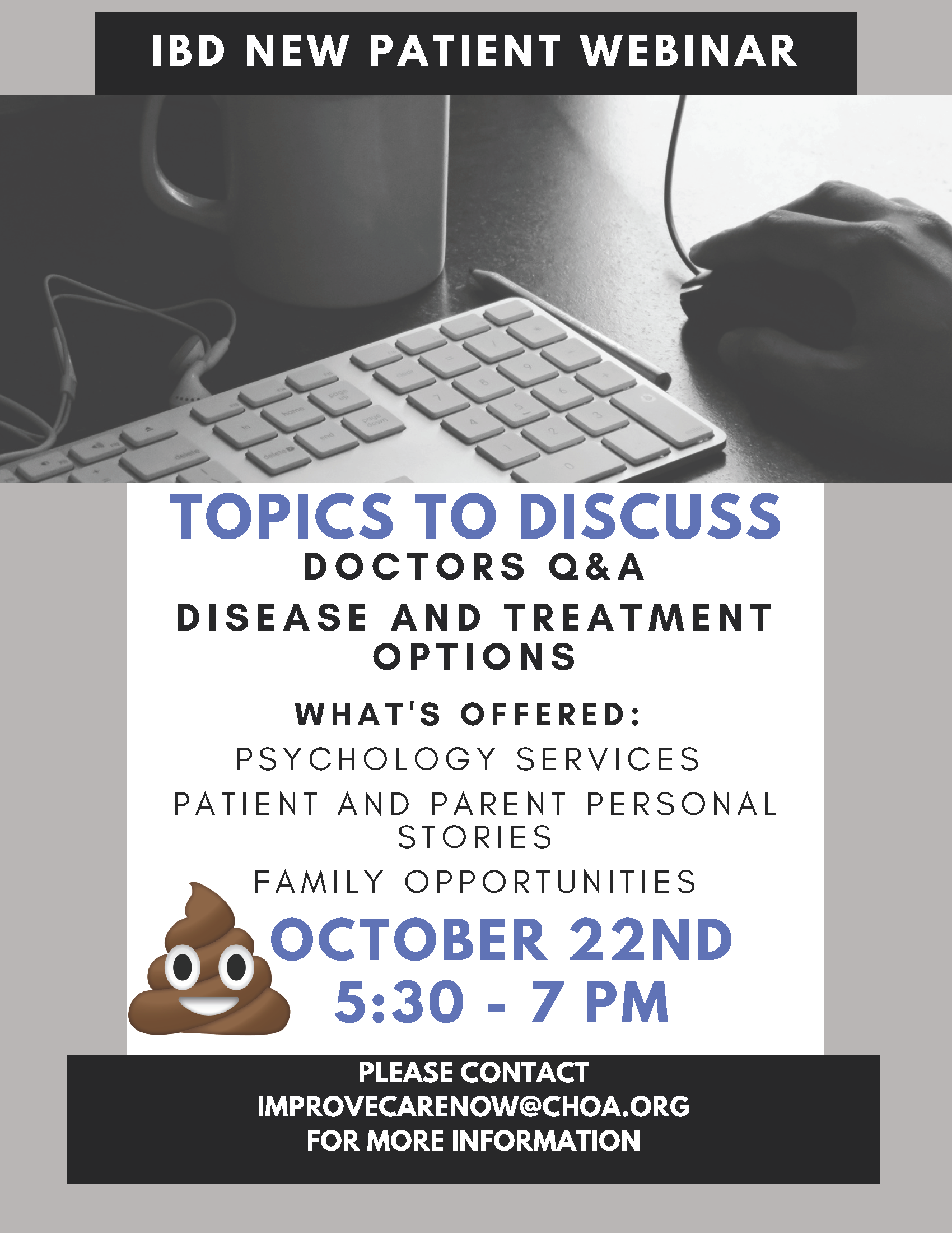 By RSVPing to attend this event, you also sign up to join ImproveCareNow's CIRCLE community and receive the latest updates on ImproveCareNow. You can unsubscribe at any time.